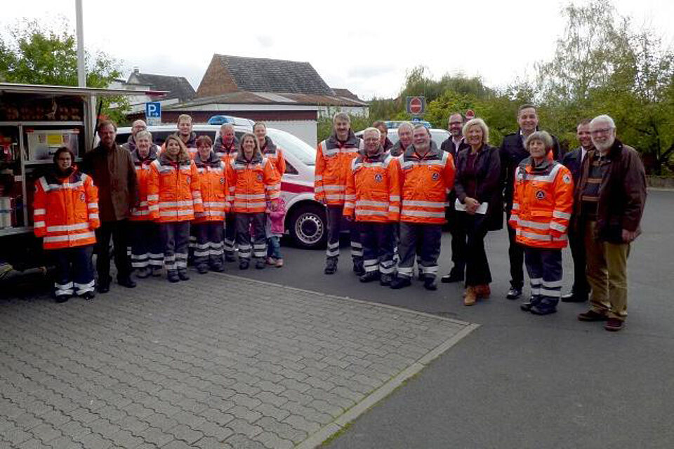 Die Schnelleinsatzgruppe (SEG) Betreuung in Pohlheim ist im Einsatzfall für die Betreuung von unverletzten Personen zuständig. Diese Aufgabe umfasst die Registrierung der Betroffenen, den Aufbau eines Betreuungsplatzes und auch die Verpflegung mit Essen und Getränken. Grundlage dafür ist eine entsprechende Ausrüstung.  „Mit der Neuanschaffung wollen wir den Katastrophenschutz auf der örtlichen Ebene ausbauen. Uns geht es darum, für eine zeitgemäße und professionelle Ausstattung zu sorgen und so das Ehrenamt langfristig zu stärken“, erklärt Christian Betz, Vorstand des Kreisverbandes.Bei den Fahrzeugen handelt es sich um einen Kommandowagen, einen Betreuungskombi und einen Betreuungsanhänger GA-25 Betreuung, die für ihren Einsatzzweck entsprechend ausgebaut wurden. Im Einsatzfall dient der Kommandowagen der Führung der Einheiten. Dafür ist der Mercedes Vito mit umfangreicher Funktechnik, einem Laptop mit Wlan und einem Drucker ausgestattet. Außerdem verfügt das Fahrzeug über einen Stromerzeuger mit 1,6 kVA Leistung, Gerätschaften zum Absperren und Kennzeichnungswesten.Mit dem Betreuungskombi, ebenfalls ein Mercedes Vito, gelangen bis zu acht Einsatzkräfte der SEG Betreuung zum Einsatzort. Außerdem wird mit diesem Fahrzeug der Geräteanhänger gezogen. Hierfür wurde eine Anhängekupplung verbaut, mit der Anhänger mit einem Gesamtgewicht von bis zu 2,9 Tonnen gezogen werden können. Weiterhin befinden sich auf dem Fahrzeug zahlreiche Einsatzmittel, die zur Registrierung und Betreuung unverletzter Betroffener benötigt werden. Dazu gehören unter anderem Büroausstattung, Hygieneartikel und Decken. Der Geräteanhänger GA-25 Betreuung transportiert alle Gegenstände, die für die Einrichtung und den Betrieb einer Betreuungsstelle notwendig sind. Das umfasst beispielsweise ein aufblasbares Rettungszelt mit 35 Quadratmetern Grundfläche, eine Zeltheizung und Beleuchtungseinrichtung, einen tragbaren Stromerzeuger, Feldbetten und Einweggeschirr. Der Inhalt des Anhängers ist auf 200 unverletzte Betroffene ausgelegt. Im Heck verfügt der Geräteanhänger über eine komplett ausgestattete Teeküche mit Kaffeemaschine und Hockerkocher. Mit dieser Ausstattung können Betroffene mit warmen Getränken und einfachen Speisen, wie zum Beispiel Eintöpfe, versorgt werden.Die Fahrzeuge nahm Jürgen Görig, Vorsitzender des Ortsvereins, stellvertretend für alle ehrenamtlichen Helfer/innen in Pohlheim entgegen. An der feierlichen Übergabe nahmen außerdem Landrätin Anita Schneider, Bürgermeister Udo Schöffmann und der stellvertretende Stadtbrandinspektor Markus Lohrey teil.In ihren Grußworten betonten sowohl Schneider als auch Schöffmann den hohen Stellenwert einer guten Ausstattung für den Katastrophenschutz und dankten zugleich den ehrenamtlichen Helfer/innen des Ortsvereins, die viele Stunden ihrer Freizeit für die Allgemeinheit opfern.